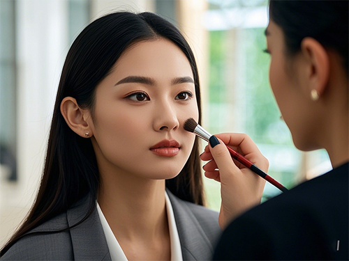 具体方法:不要使用含大量珠光粉的腮红,用刷子向斜上方刷腮红,避开脸上的笑肌,这是最易出油的地方。