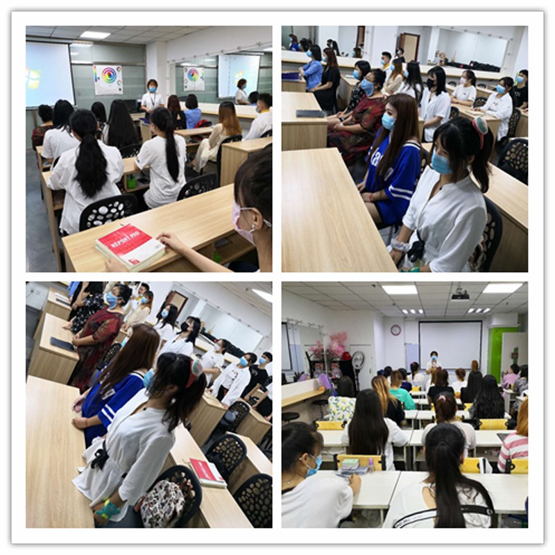 随后,各班班主任结合统丽学校在疫情以前的贡献和付出,以及自身的所见、所闻、所感、所悟,从“家国情怀”、“科学防疫”、“坚持常态防控,共建平安校园”等方面,耐心、细致地为学员们讲解疫情防控的法律法规,亲切、真诚的与同学们进行思想交流,进行温暖贴心的心理疏导,传授疫情防控知识和技巧,倡导广大师生携手同心,共创平安和谐校园。