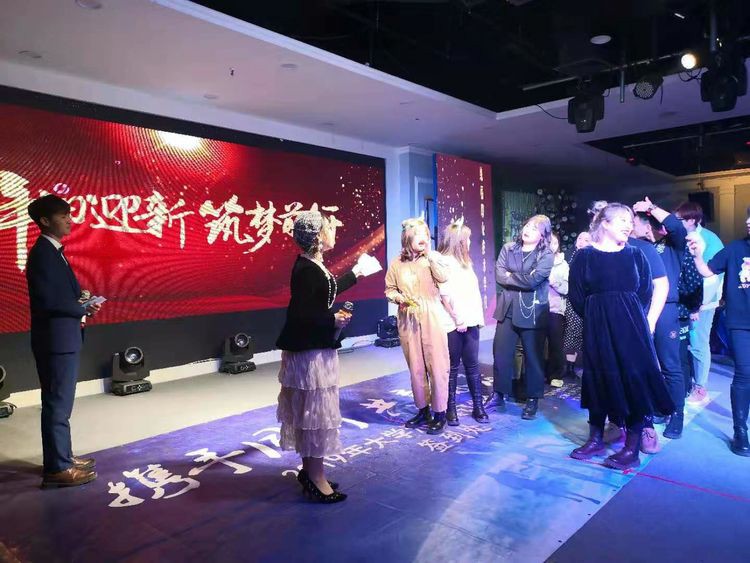 可亲可敬、面带微笑的郭晓芳校长首先上台致辞,郭校长首先感谢了为这次联欢会的举办付出重要努力的师生们,随后简要回顾了过去一年里广大师生的努力和成就。在谈到新冠疫情造成的冲击时,郭校长尤其对广大统丽学员的努力、付出、坚持和进取予以了赞扬和鼓励。郭校长表示:“即将过去的2020年,是不平凡的一年,是充满波折的一年。统丽学校能顶风扬帆、逆流而上,克服重重困难,取得了辉煌成绩,与统丽学校的全体师生的奉献、拼搏、奋斗、坚持分不开。我祝愿全体教职工和所有学员们,在新的一年里有更多的获得感和幸福感!祝统丽学校在新的一年红红火火,蒸蒸日上!”郭校长饱含深情和激励的发言,赢得了台下经久不息的掌声。
