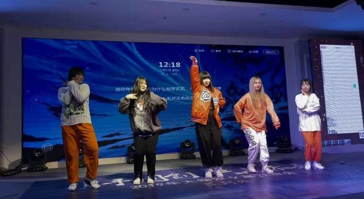 在颁奖仪式喜庆的氛围下,联欢会的文艺汇演部分正式开始!国际化妆班五位小学员,首先以精彩绝伦的舞蹈串烧“佐客女团”嗨翻全场,美发烫染班带来的“高仿真”独唱曲目“好想爱这个世界啊”同样迎来满场喝彩。亚健康调理师班的舞蹈“可爱摆”、高彩2班的舞蹈“漫步人生”和“虚胖组合”、美发弟子班的吉他弹唱“老男孩”、金牌美容师班的创意舞蹈“黑白腿”、国际纹绣班的舞蹈“Blackpink”、美发剪发班的歌曲串烧.......精彩且令人眼花缭乱的歌舞演出,将现场的气氛一次又一次地推向高潮。