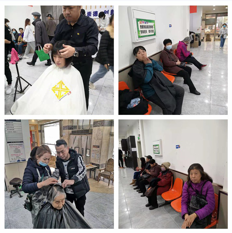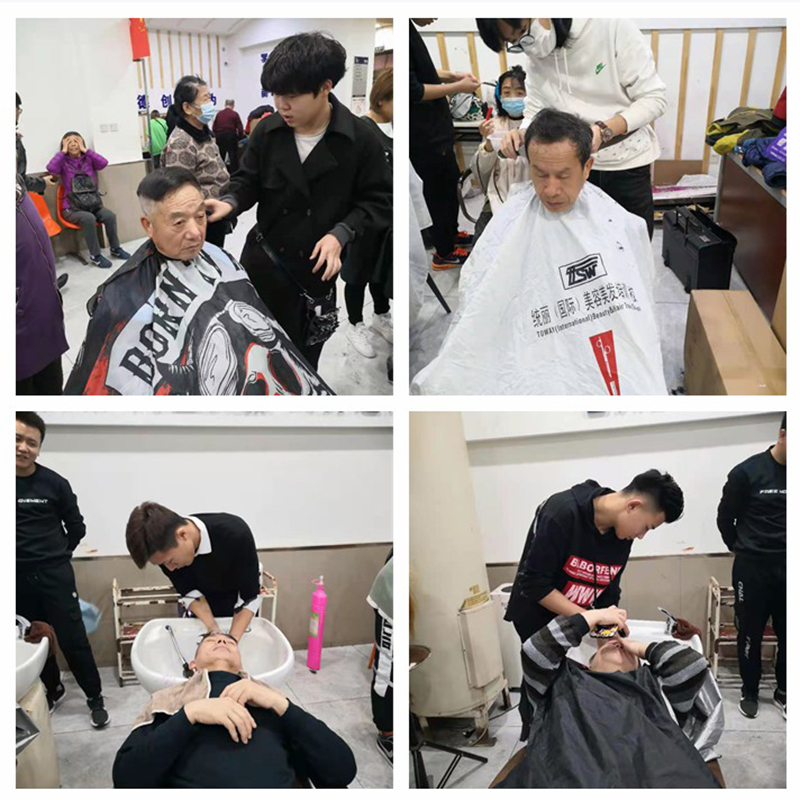 美发弟子班和美发大师班的学员们拿出公益志愿者特有的朝气和热情,用所学的精湛的美发技艺,分批次为数十名西华社区群众提供了公益理发服务。两位美发大咖陈钢和穆彭老师特别亲临公益现场“督阵”,亲切地跟老人们交谈的同时,还时不时对学员们进行指导。“统丽学员和老师的服务态度什么时候都是那么地好,理发水平也高!”、“这些孩子都是活雷锋,心非常热,社会就需要这样的年轻人。”西华群众交口称赞。